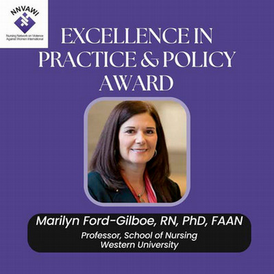 Félicitations à Marilyn Ford-Gilboe qui a reçu le prix d’excellence en politique et pratique décerné par le Nursing Network on Violence Against Women International [réseau international du personnel infirmier luttant contre la violence faite aux femmes].